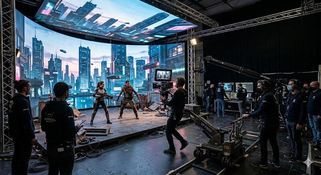 Dengan layar LED beresolusi tinggi yang mengelilingi set, lingkungan digital dirender secara instan menggunakan teknologi seperti Unreal Engine. Aktor dapat melihat gunung salju atau luar angkasa yang sedang mereka “tempati”, dan yang lebih penting, cahaya dari layar LED tersebut memantul secara alami ke kulit serta kostum aktor. Ini menghilangkan masalah klasik “tumpahan warna hijau” (green spill) yang sering menghantui proses pengeditan konvensional.
