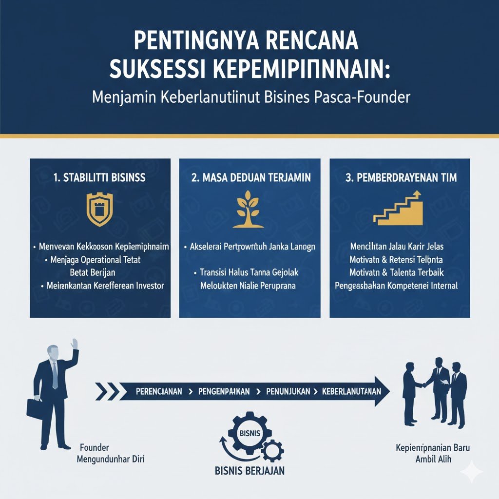 Ketika seorang founder memutuskan untuk mundur atau pensiun, sering kali terjadi guncangan internal yang hebat. Karyawan mungkin merasa tidak aman akan masa depan mereka, sementara investor dan klien mulai meragukan stabilitas perusahaan. Rencana suksesi hadir sebagai “sabuk pengaman” yang menjamin bahwa operasional tetap berjalan tanpa hambatan. Dengan adanya alur transisi yang jelas, setiap elemen dalam perusahaan tahu siapa yang akan mengambil kendali dan bagaimana arah kebijakan selanjutnya, sehingga kepercayaan stakeholder tetap terjaga dengan baik.